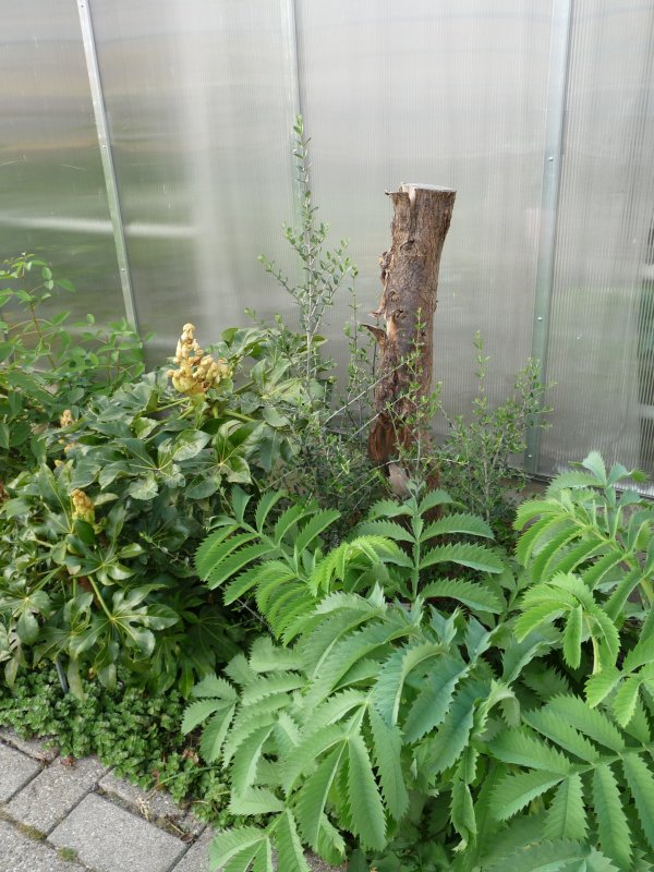 Efter att vi hade skiljts åt passade jag själv på att bege mig till Landbohøjskolen i Frederiksberg. Till min förvåning konstaterade jag att det fortfarande är lite liv i olivträdet som står mellan växthusen. Fatsian som står intill är på väg att blomma.