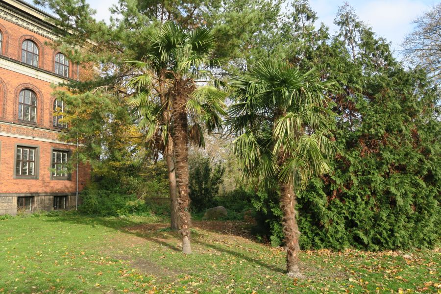 L'immagine qui sotto, dal Giardino Botanico di Copenhagen, è stata scattata circa un mese fa. La palma più grande fu piantata nel 1988 e la palma più piccola fu piantata intorno al 2000. Hanno la stessa origine e sono sopravvissute quando altre palme sono state uccise. La posizione in cui queste palme crescono, è ora purtroppo minacciata dalla costruzione di un nuovo Museo di Storia Naturale. Spero che questi palmi possano essere trasferiti, se necessario.