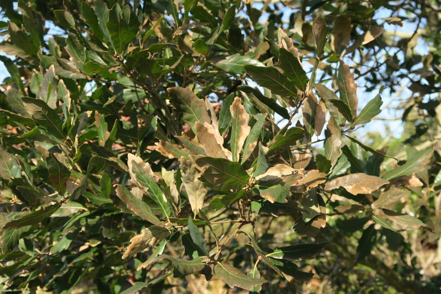 Jag har en Q. myrsinifolia som förde en ganska tynande tillvaro de första åren på friland då den frös ner flera gånger. Efter de senaste årens milda vintrar har den dock vuxit till sig och är nu drygt två meter hög. Jag var rädd att den skulle frysa ner igen, men den tycks ha klarat sig med endast lite bladskador.