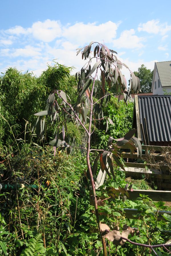 () I mitt förra inlägg om vinterskador skrev jag inget om Eucalyptus. Visserligen såg mina Eucalyptusplantor bra ut efter vintern, men jag visste av erfarenhet att de kan vissna på våren eller början av sommaren. Det var nog bra, eftersom en E. niphophila (planterad 2016) och en E. gunnii 'Azura' (planterad 2019) plötsligt har vissnat efter att tidigare ha börjat skjuta nya skott. En E. perriniana (planterad 2016) ser fortfarande bra ut. Jag vet att marken som de växer i är sandig och lätt torkar ut. Jag har vattnat regelbundet tidigare under våren, men eftersom det hade regnat mycket den senaste tiden så trodde jag att marken var tillräckligt fuktig. Jag vet inte om det verkligen var torkan som knäckte dem, eller om det var någon annan faktor, som vinterskador på rötterna eller angrepp av honungsskivling. Om jag gräver upp plantorna och tittar på rötterna så kan jag säkert se om det är honungsskivling som har angripit dem.