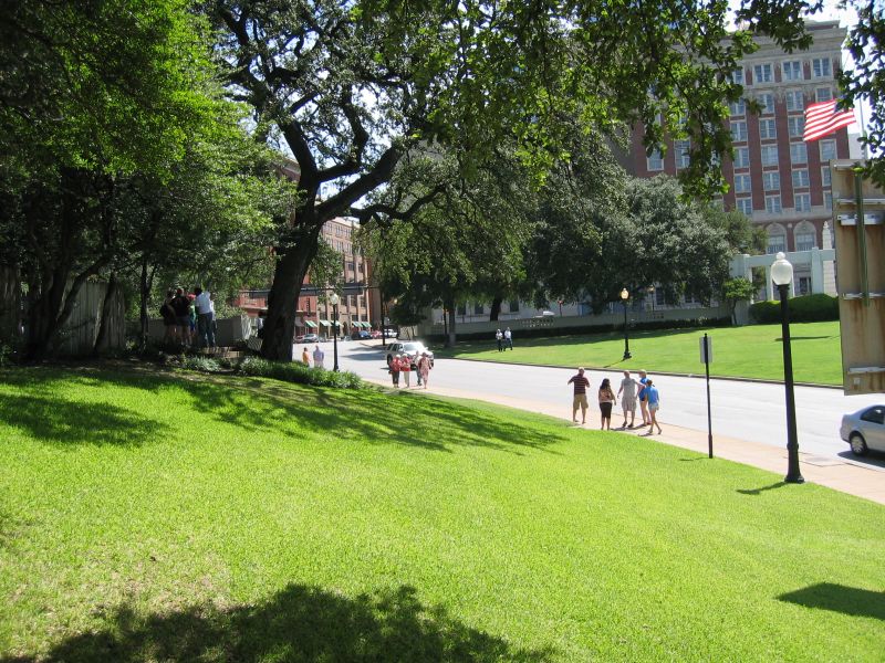 Här är "The Grassy Knoll". Piedestalen som Abraham Zapruder stod på när han tog sin berömda filmsekvens syns till höger i mitten.