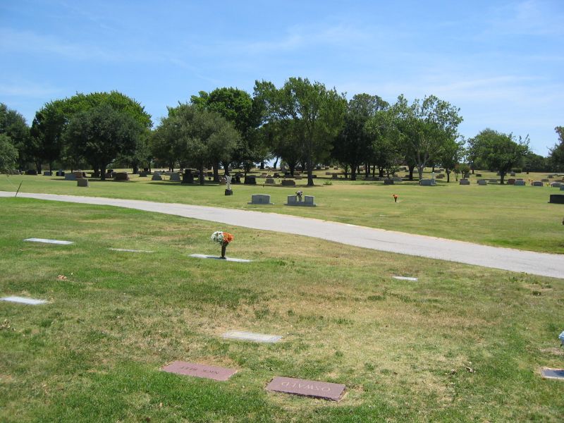 Jag hade hoppats att jag skulle hitta lite intressanta växter på begravningsplatsen. Tyvärr var det ganska öppet och tråkigt där. Lustigt nog fanns det bilvägar inne på begravningsplatsen. Jag tänkte först ställa bilen på en parkeringsplats och sedan gå till graven. Jag insåg snabbt att jag skulle väcka mindre uppmärksamhet om jag istället körde fram till i närheten av graven. I Texas går man så lite som möjligt, i synnerhet om temperaturen är nära 100°F.