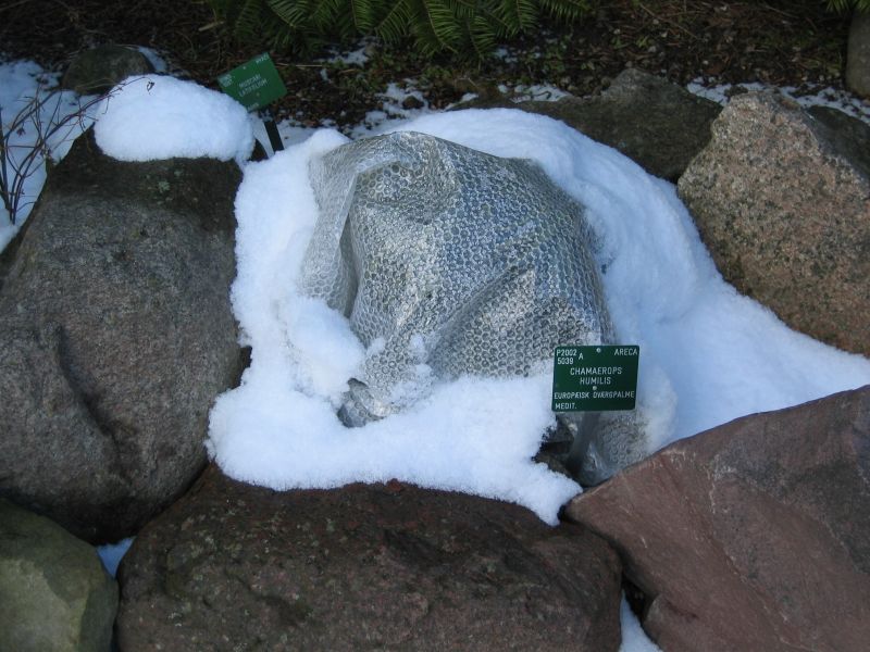 En annan Chamaerops humilis skyddad med bubbelplast.