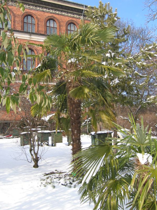 En liten Trachycarpus i Landbohøjskolens Have, Frederiksberg.